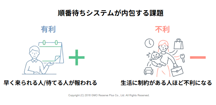 順番待ちシステムでは、 朝の受付開始前から待機し、 ようやく順番を取れても、