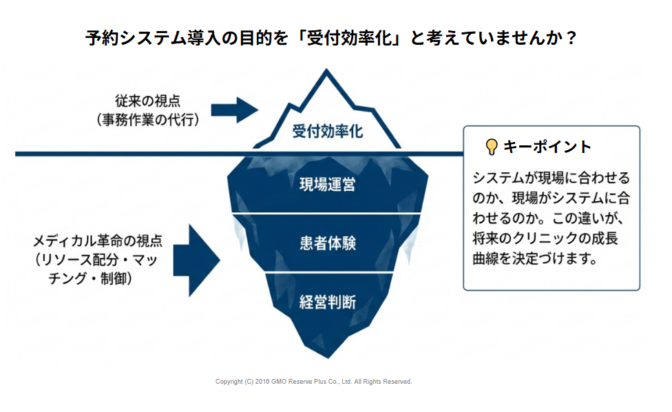 経営の視点で見ると、予約システムは クリニックの状態を正直に映し出す鏡のような存在です。