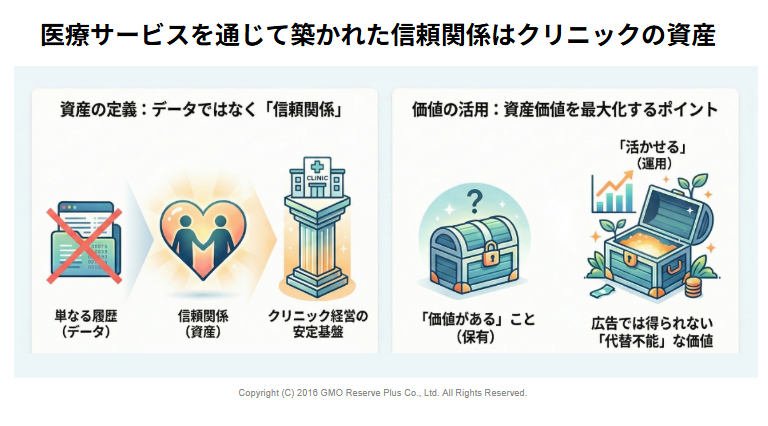 日々の診療を通じて生まれているのは、単なる来院履歴ではなく、医療サービスを通じて築かれた信頼関係です。