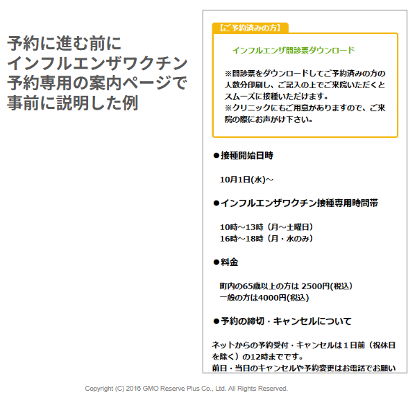 事例1:インフルエンザ予防接種の案内役を予約サイトに任せる