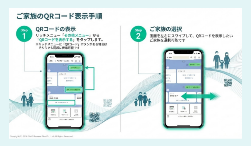 LINE上でご家族分のQRコードも表示 |